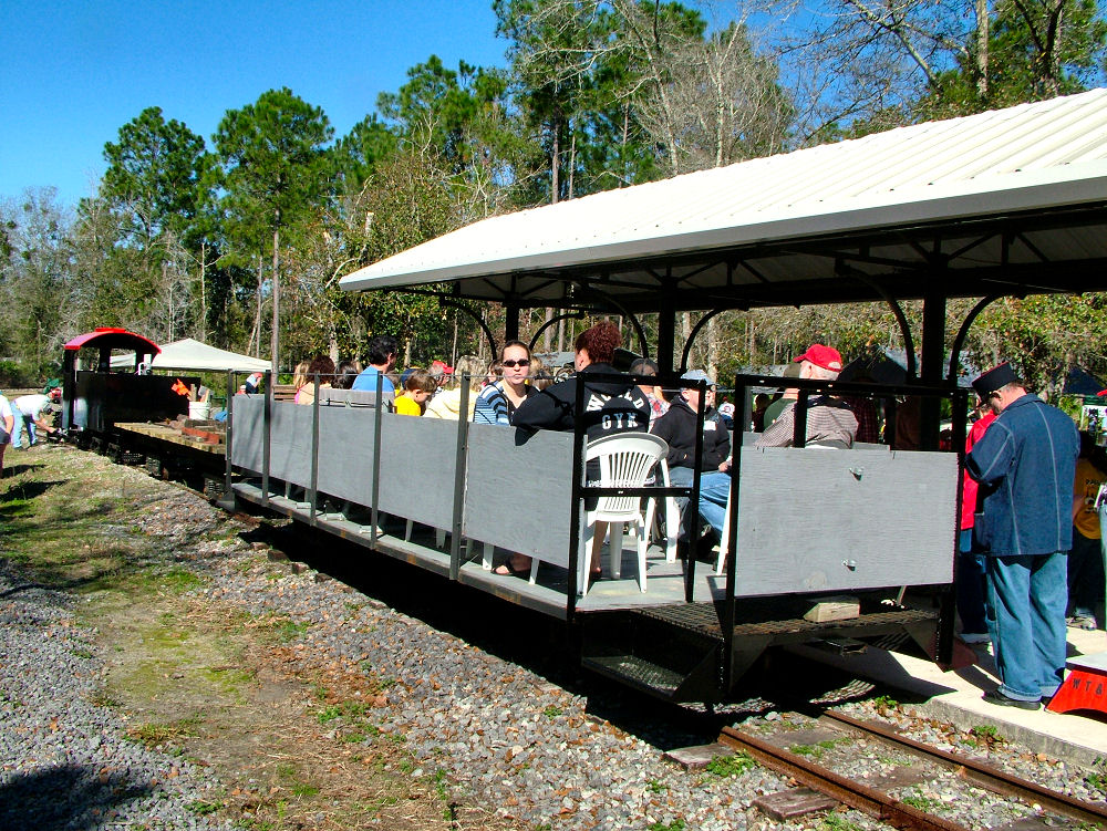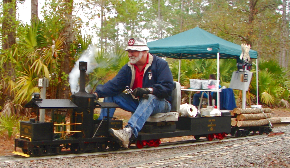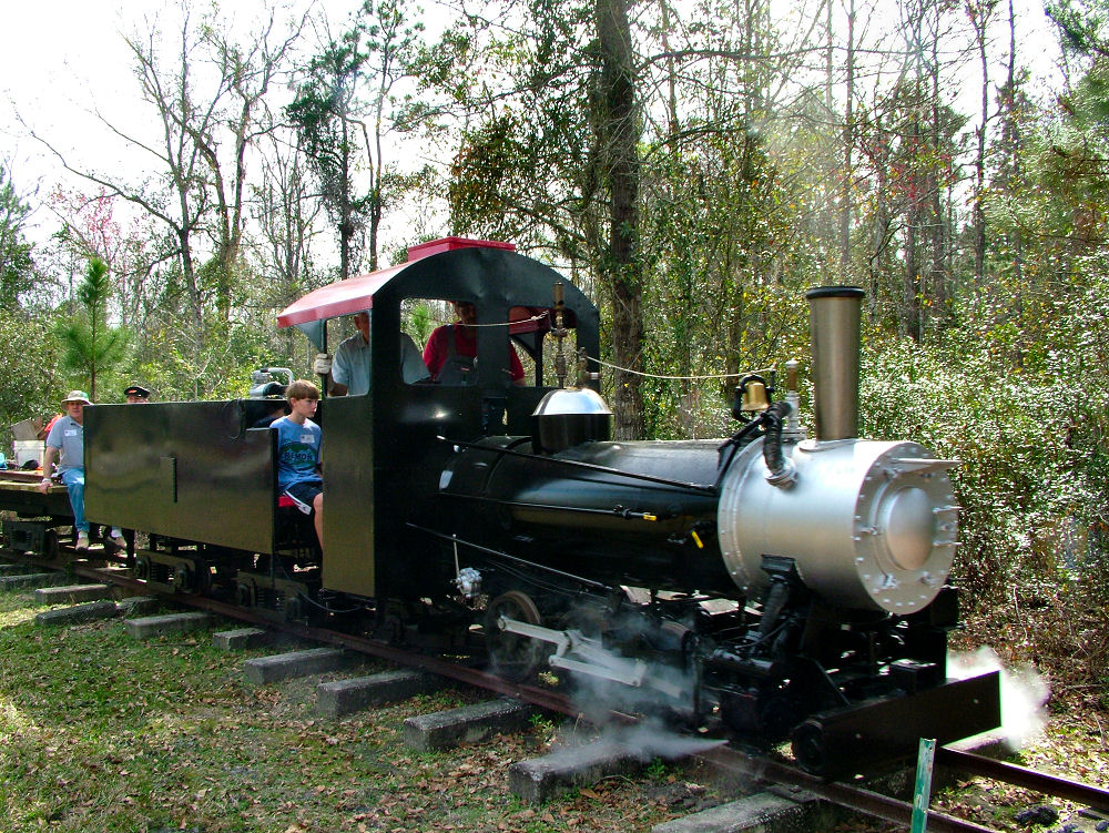 Please  West Tocoi & Bostwick RR is comprised of two railroads, 7-1/2" and 2-foot gauges. They cross at four locations along the mainline. We have 3,600 ft of 7-1/2" track, a 6 track yard accommodating 250 ft of trains, 2 electric stub tracks and drive-thru unloading. We've installed an automated signaling system for the 7-1/2"/2-foot crossings. 7-1/2" mainline minimum radius is 67 ft. The 2-foot mainline is over 6,200 ft. The outer loop is complete. This railroad features a roundhouse, turntable, maintenance pit, sidings and two wyes. There